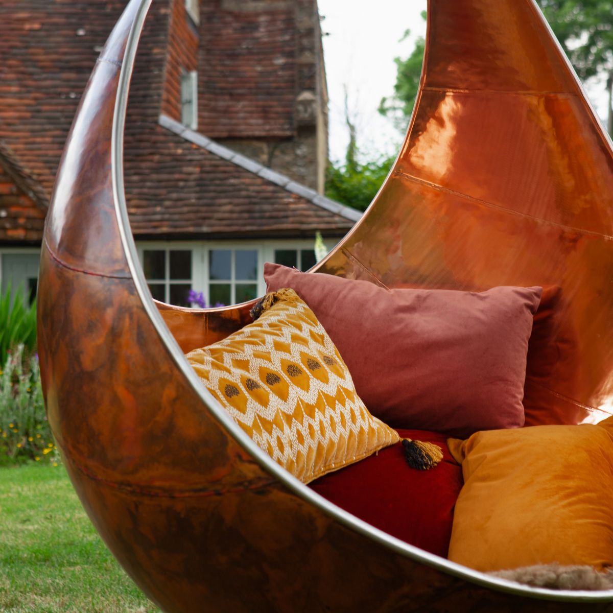 Our stunning copper swing seats, crafted by the same family of artisans in West Sussex for over two decades, are a testament to their exceptional craftsmanship and longevity. They are exquisitely comfortable and versatile enough to be used indoors or outdoors.